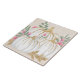 Ceramic tile with fancy watercolor white pumpkins with accents of faux gold glitter. Surrounded by green leaves and pink wild flowers.
