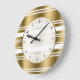 Great price for a very nice product. Arrived a day early - unheard of these days. The outside gold area has a little more orange tone to it than shown in the picture. Great packing so product can't get damaged. I used the same packing to forward the clock to my brother and sister-on-law for the 50th wedding anniversary. Printing was just as expected - lovely!
