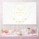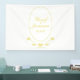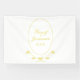 Add an elegant touch to your wedding festivities with this white and gold wedding banner. The front features the names of the names of the wedding couple and the date of the wedding. Rose design. Gold. Use the template to personalize.