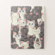 Seamless pattern with white, gray, stripped tabby and spotted cats