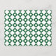 A bold, graphic pattern of interlocking green and white diamond shapes. The green diamonds each contain a small white diamond making white the dominant color of the original design.