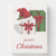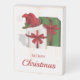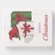 Destei's original festive design of two gift boxes together with a red and white Santa hat that has a Christmas Holly on it. The present box designs are white and green and they both have a beautiful red bow on them. There are also two personalizable text areas that now read: "Merry Christmas".