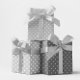 Grey and white polka dot mix for birthday or wedding gift wrap.