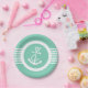 White And Mint Nautical Anchor & Stripes Paper Plates