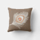 White and Peach Peacock Feather on Taupe Tan Throw Pillow