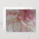 This postcard features a detailed close-up photograph of a stunning pink and white carnation flower. The photograph was taken using macro photography to show the beauty of this white flower that appears to have been painted with delicate pink flecks.