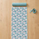 Beautiful but pricey yoga mat used as runner between mirrored closet doors. I chose it for the pattern and colors. Stunning!! It works well for spontaneous yoga poses as well ;-).
