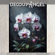 Delicate yet striking, this design showcases exquisite white and pink orchids blooming gracefully against an elegant black background. Orchids symbolize beauty, love, and strength, embodying both refinement and exotic charm. The soft hues of white and pink contrast beautifully with the deep backdrop, enhancing their intricate details and creating a luxurious, sophisticated touch for any decoupage project.