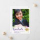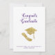 Create an elegant white and purple graduation announcement with your graduate's photo for the class of 2025. This design is decorated with a graduate cap and diploma illustrations in golden yellow colors. The template makes it easy to personalize the grad announcement with a name, year, school name, photo and other text.