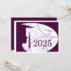 A silhouette of a young man in his cap and gown. Floral designs in the background. The back has a purple background with white lettering for the graduation announcements.