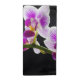 A stunning white and purple orchid gracefully stands out against a deep black background, its petals exhibiting a delicate blend of colors that symbolize elegance and serenity. This exquisite flower, often associated with luxury and beauty, draws attention with its intricate patterns and vibrant hues. The contrast between the orchid's vivid colors and the dark backdrop enhances its ethereal allure, making it a captivating subject for both photographers and botanists alike.