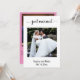 The front features a clean white background that lets your wedding photo shine, accented with the words “Just Married,” your first names, and your wedding date in a mix of soft purple script and block fonts. It’s a fresh and timeless design that feels both personal and modern. Flip it over to reveal another cherished photo and the heartfelt phrase “At last” on a stunning pinkish-purple background that ties perfectly into the wedding suite’s mystical color palette. Add your personalized message, sign off with “All our love,” and your names—making it a truly memorable and meaningful keepsake for friends and family.