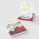 White and Red Poinsettias II Christmas Holiday Stone Coaster