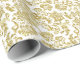 White And Shiny Gold Floral Damasks Pattern Wrapping Paper