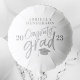 Celebrate your big achievement in style with our white and silver personalized graduation balloons! This high-quality balloon features a sleek white and silver design, perfect for any graduation celebration. Personalize it with your name or the name of your special graduate for a custom touch that will make your party pop. Made from durable materials, this balloon is sure to last throughout the festivities. Make your graduation party one to remember with our silver personalized graduation balloon! You can customize the background color with the editing tool.