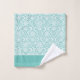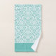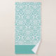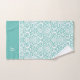 White vintage floral damasks pattern on a turquoise-blue background. Optional monogram.