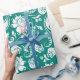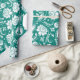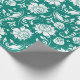 White and turquoise blue floral damask pattern wrapping paper