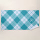 White and turquoise-blue plaid pattern beach towel