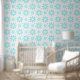 A charming pattern featuring small and large daisy flowers in a subtle gradient – from white to turquoise, set against a light background. The design is completed with irregular, asymmetrical turquoise dots, adding lightness and dynamism. A perfect choice for floral motif lovers and pastel color enthusiasts. Find more products with this pattern in our collection!