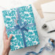 White And Turquoise Floral Damasks Pattern Wrapping Paper