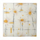 Charming floral pattern ceramic tile featuring white daisies with golden yellow centers scattered across a distressed, plaid-inspired background. The hand-drawn flowers, textured yellow accents, and subtle black grid lines create a rustic, vintage aesthetic with a fresh and sunny feel. Ideal for spring, summer, and country-inspired designs.