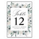 Elegant, floral table number cards featuring the table number, your names, and wedding date framed by white watercolor anemones, ivory roses, and dark sage green leaves. The design repeats on the reverse side. Designed to coordinate with our White Anemones and Roses wedding collection. To order this design, please customize table numbers one by one and add them to the cart individually.