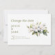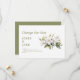 Let your guests know about your new plans with this elegant change the date card. Featuring a delicate apple blossom illustration in soft white and green, this design uses modern serif typography in olive green on a clean white background for a fresh, minimalist look. The card clearly communicates your postponement with a gentle, personal touch, perfect for spring or garden weddings. The reverse features a solid olive green for a sophisticated finish.