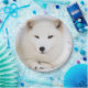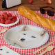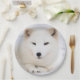 A cute white arctic fox resting in the snow. The animal has white fur and brown eyes and is looking at you. A real diva! Matching paper napkins: