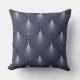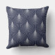 White Art-deco Geometric Pattern On Blue Throw Pillow