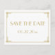 Gold and white art deco Great Gatsby wedding Save the Date postcards with customizable text