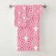 White Art Deco pattern on pink background Bath Towel Set