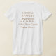 My overall review is that the T-shirt is nice, it fits true to size however the font is significantly smaller than advertised and you can't read it. The printing is unreadable and there is a strain to read it. It does not look like the advertised product. Maybe the shirt color is darker or a larger more visible font should have been used. Photos with and without flash and font is barely legible.