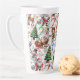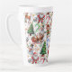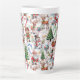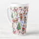 Christmas-themed pattern featuring Santa Claus, reindeer, snowmen, elves, Christmas trees, candy canes, and snowflakes on a white background