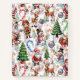 Christmas-themed pattern featuring Santa Claus, reindeer, snowmen, elves, Christmas trees, candy canes, and snowflakes on a white background