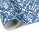 White Baroque Damasks Custom Blue Background Wrapping Paper