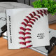 Add personalization to this close-up, new baseball photo, showing red stitching. Templates on front and spine.