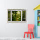 The artwork creates the illusion of having a bay window overlooking a forest path. The illusion makes you feel as though you're looking out at a beautiful forest with rays of sunshine between the trees.