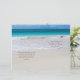 Stylish beach theme custom wedding program, with a lovely photograph of a pristine white sandy beach and aqua blue water. Brown text, on both sides of the program, is ready to personalize with all your wedding information. Fold in half to form the program. Matching wedding products are available.