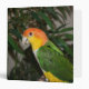 Sweet White Bellied Caique parrot in front of a Bamboo tree giving a jungle or forest vibe.