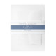 Tie your wedding suite together with this white belly band featuring blue text. Designed to stand out against the blue invitations, it includes a striking blue stripe in the center adorned with a white wedding bell doodle. This belly band adds a cohesive and stylish touch to your wedding stationery.