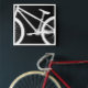 This contemporary styled poster features an oversized white bicycle silhouette on a black background creating a geometric, modern look. The background color can easily be changed by clicking "Edit Design". This print is shown in a white frame (not included).