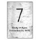 White birch wedding table seating cards. Table number and names with wedding date are printed on both sides over realistic birch bark images. To create each card with it’s number, add one completed card to your cart. Then, click on the title in the cart which will take you back to the product page. Change the number and do it again until you have all the numbers needed.