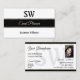 White Black and Gold Stripes with Monogram & Photo Business Card