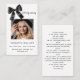 White background, and space for your photo. Decorated with a black bow. Personalize and add name, dates and your text and prayer.