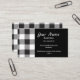 White Black Buffalo Plaid Check Monogram Business Card