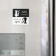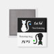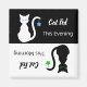 A reminder to feed the cat and let others know that the cat has been fed. Simply turn the magnet around when the cat has been fed in the morning or evening. The evening side has a white cat with a blue star hanging from their tail. The morning side has a black cat with a green star hanging from their tail. The background is monochrome black and white.