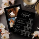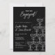 Celebrate your love story with this chic and minimal champagne tower engagement invitation. The front features a hand-drawn stack of bubbly coupe glasses in white linework, paired with stylish calligraphy and serif fonts on black. The back showcases three photo slots to add your favorite engagement memories, creating a personal, elegant touch. Ideal for modern couples planning a cocktail soirée, rooftop celebration, or classy dinner party.