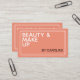 Beautiful modern and simple makeup artist business card. With coral powder blush peach colored minimalist font. Click on 'Personalize' to find the template ready to be customized with your unique business name, profession and contact information, and text of your choice. This particular strong design was made for those who like simple but sophisticated classic designs.