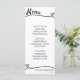 Cute black and white wedding reception menu with character couple. Personalize it by adding your event text details.