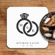 White & Black Diamond Ring Monogram Wedding Square Paper Coaster